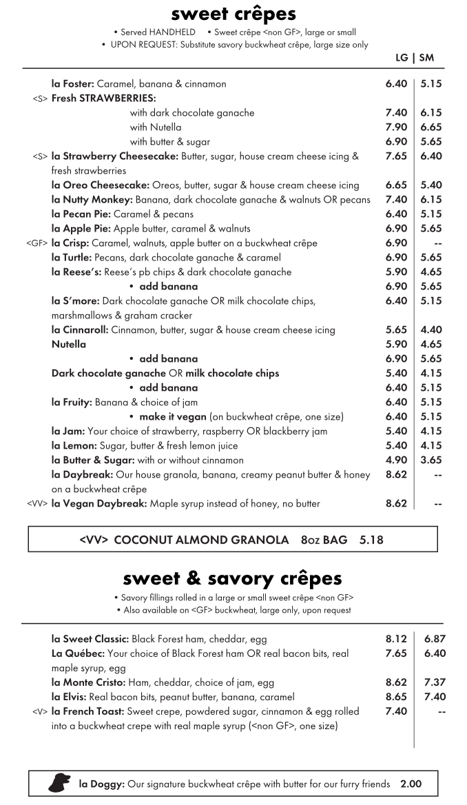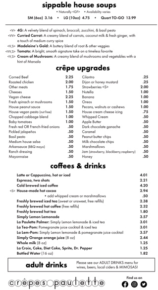 Crêpes Paulette Fayetteville Menu